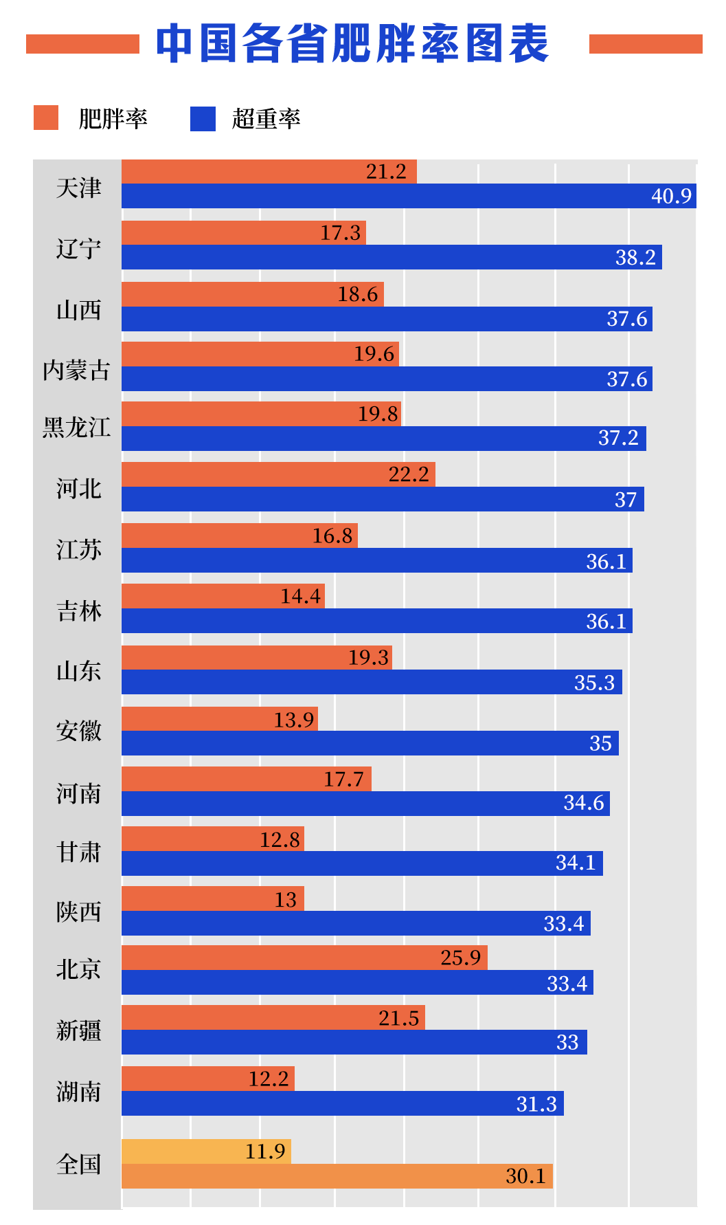 就説“吃”吧,天津是全國肥胖率最高的城市。