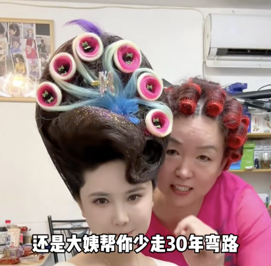 逢年過節,大姨們都會去捯飭頭髮,換個精氣神,她們在盤頭上的想象力可謂是開出天界。