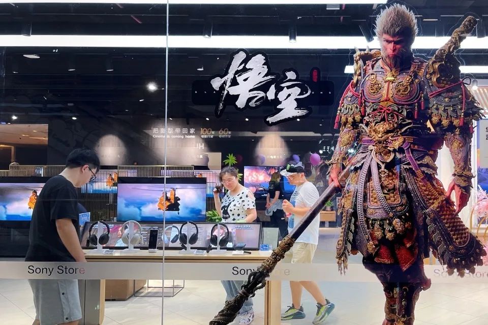 有索尼線下店把國行版PS5展示區域佈置成《黑神話:悟空》主題,還有遊戲體驗專區,吸引不少年輕人排隊試玩。