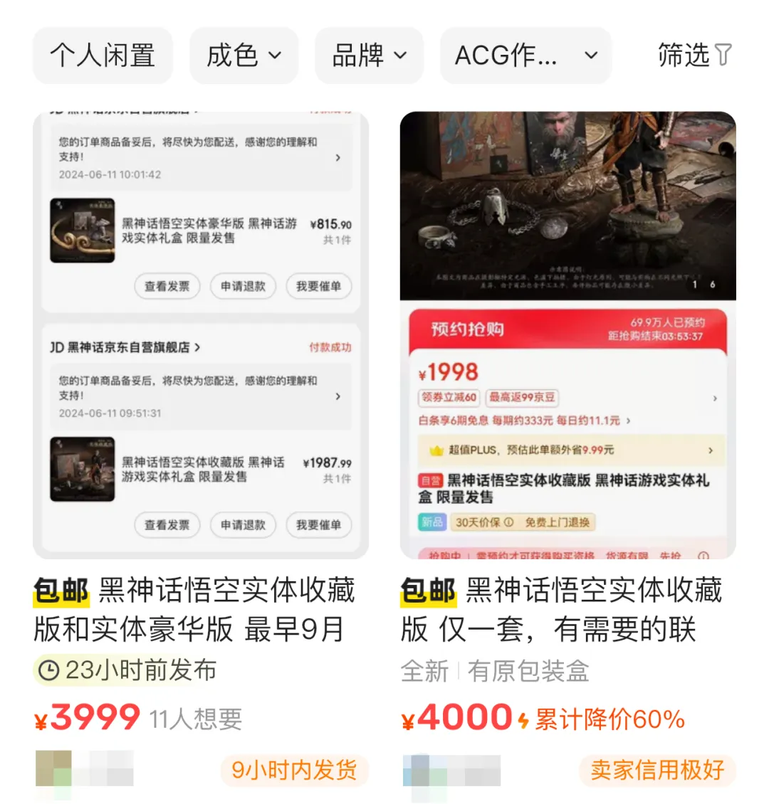 《黑神話》爆火後,最不缺的就是為熱愛買單的粉絲,緊隨其後黃牛黨入場了。