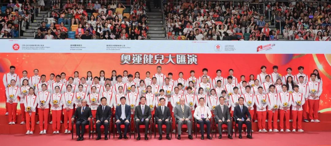 在香港國際機場,香港各界代表為奧運健兒舉行了熱烈的歡迎儀式。29日晚,香港特區政府舉行歡迎晚宴,行政長官李家超出席並和奧運健兒們親切交流。30日和31日,代表團先後訪問了香港體育學院、香港都會大學、港島一間中學、太平山頂、維多利亞港等地,並參與了奧運健兒大匯演和多項奧運項目示範。