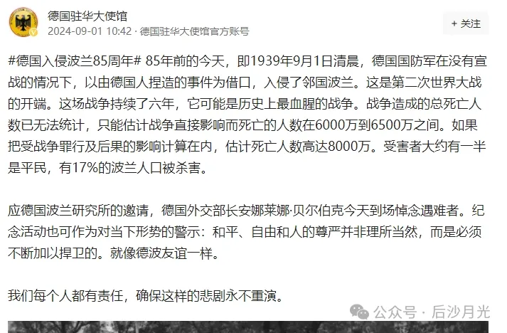 簡單説,在“德國入侵波蘭85週年”這一天,貝爾伯克並沒有吸取歷史教訓,繼續拱火烏克蘭,她不在乎再次爆發歐洲大戰及世界大戰。