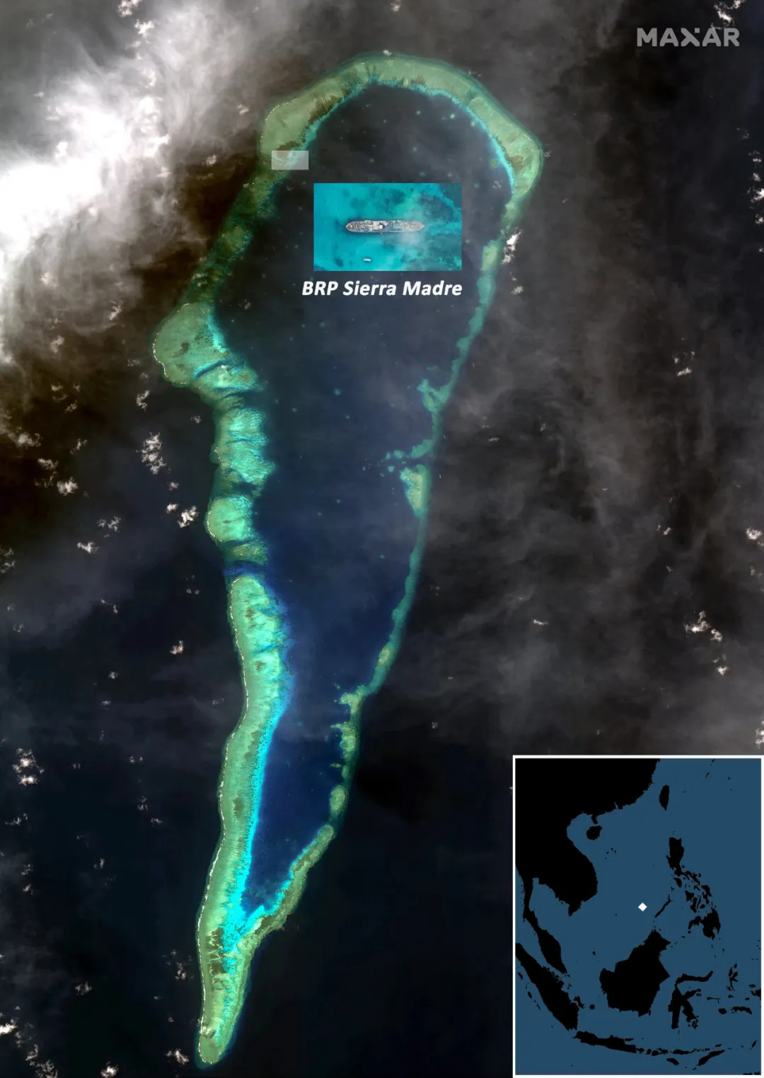 菲律賓“馬德雷山”號登陸艦所在區域的衞星照片(圖源:MAXAR)