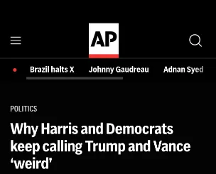 如果用一個詞來形容這個事的話,我腦中首先蹦出來的詞不是中文,而是weird。這個詞現在在歐美媒體和網絡中經常被用在涉及政治立場的語境裏,用中文理解是**“奇異搞笑”**,就是説這個事一點不嚴肅,看起來又怪又搞笑。比如之前民主黨媒體攻擊萬斯與沙發發生某種行為,就很werid。這個詞也是最近民主黨用來攻擊特朗普的標籤性詞語。