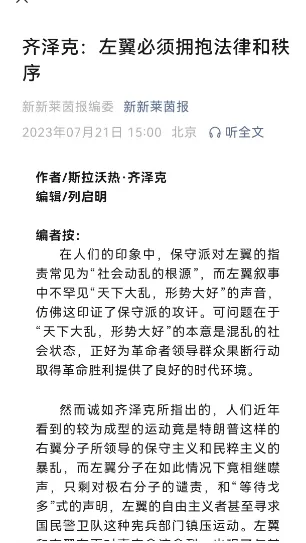 這個道理對齊澤克實際上是一樣的,比如在新疆問題上,在新冠疫情期間,他對中國的瞭解並不比歐美明星有多少區別,都是活在西方的信息繭房裏罷了,那麼我們認為他的鋭評很讓人無語,不也是很正常嗎?難道搞左翼哲學,搞精神分析的就高人一等嗎?沒有合理的信息蒐集能力,對事情本身都一無所知,鋭評起來怎麼可能靠譜呢?