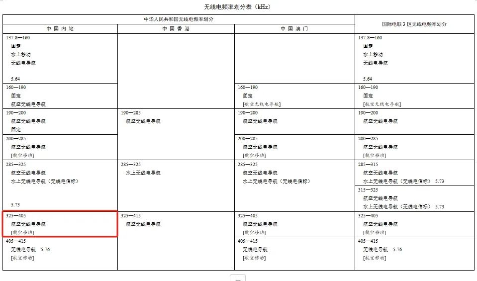 而就是在這個規定裏, 325kHz-405kHz 的頻段,被劃分給了航空無線電導航業務。