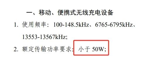 將無線充電設備的頻率規定在了 100-148.5kHz、6765-6795kHz 、 13553-13567kHz 三個頻段,而最大無線充電功率從原來的 50W 提升到瞭如今的 80W。