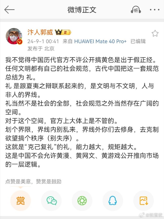 希望某些人記住,國家對這些問題的態度不是針對你們那些沒頭沒臉的小畫家、小黃文寫手,而是針對想利用這些東西的黑心資本家,這就是客觀事實上的階級鬥爭。