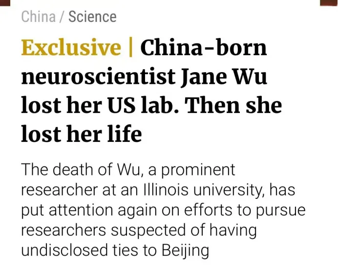 美國政府“中國行動計劃”餘波未平?揭秘華裔女科學家自殺真相_風聞