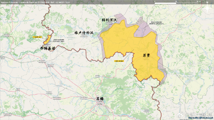 蘇賈以東的情況有所不同,敵軍正在向馬丁諾夫卡地區調派增援部隊,繼續向大索爾達茨科耶方向進攻。前段時間,俄軍擴大了克魯格利克的控制區,並伏擊了數輛敵方裝甲車,戰場仍牢牢控制在俄軍手中。