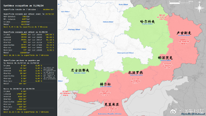 另外,作為和頓涅茨克的對比,烏克蘭在庫爾斯克本月佔領了968.99km²