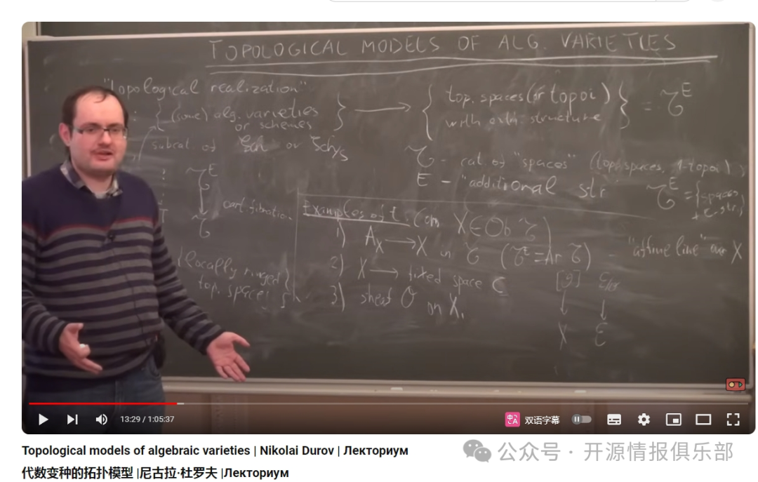 根據目前為數不多的公開資料,在YouTube上有他之前公開分享教授代數變種的拓撲模型的視頻講課內容。