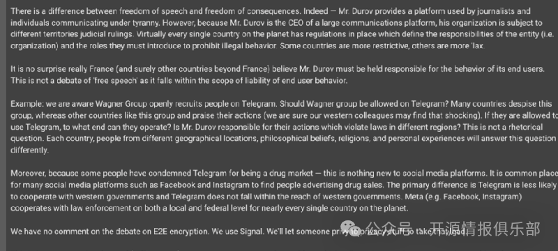 杜羅夫被捕後,Telegram沒有對情況發表評論,該公司以其集中管理結構而聞名,其中關鍵決策由杜羅夫親自做出。Telegram還以最少的人員流失和員工對公司使命的整體承諾而自豪。