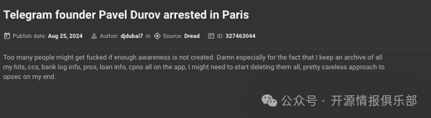 帕維爾·杜羅夫(Pavel Durov)的被捕,在暗網及地下論壇和黑客社區中引起了廣泛的動盪。
