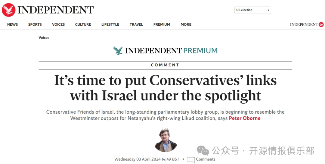 據資深記者彼得·奧本(Peter Oborne)稱,該組織與以色列政府有着長期的聯繫,並且“開始類似於本雅明·內塔尼亞胡的右翼利庫德集團聯盟的威斯敏斯特前哨”。