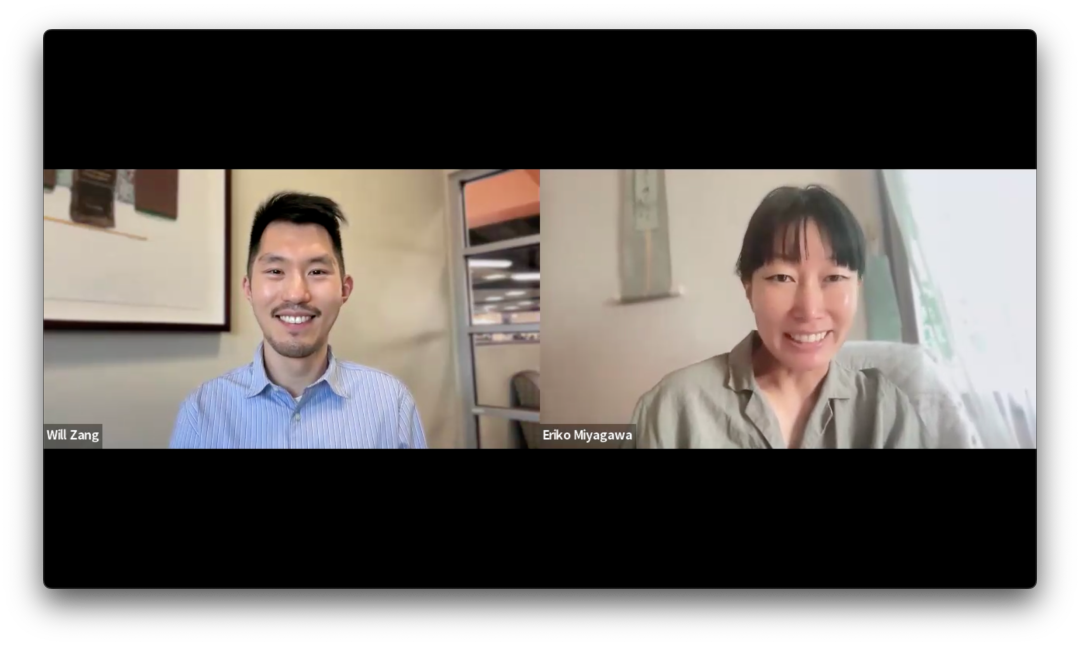 △ 筆者(左)視頻採訪宮川繪里子(右)