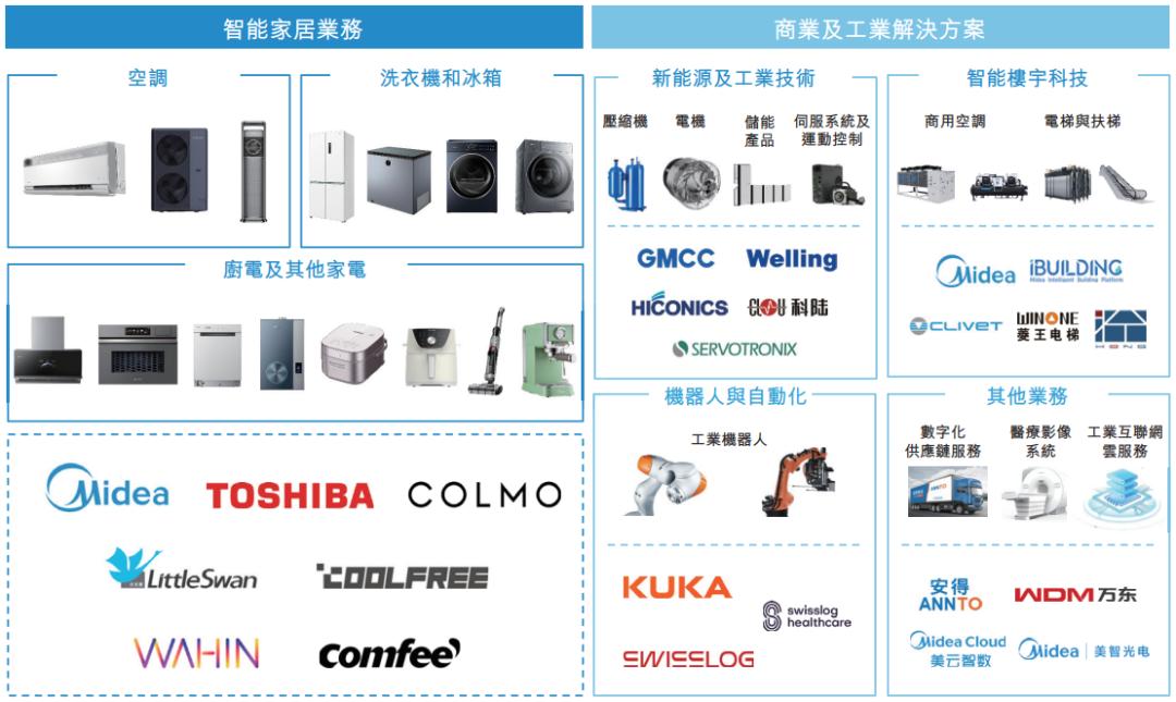 美的品牌矩陣(智能家居業務為C端品牌,商業及工業解決方案為B端品牌),圖源美的集團招股書