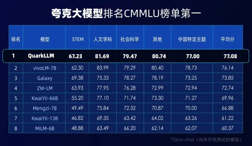 在CMMLU與C-Eval中評測中,夸克大模型分別獲得第一名的成績;其中,在寫作、考試等部分中文場景,夸克大模型的知識覆蓋、上下文理解、創造性表達等能力尤為突出。