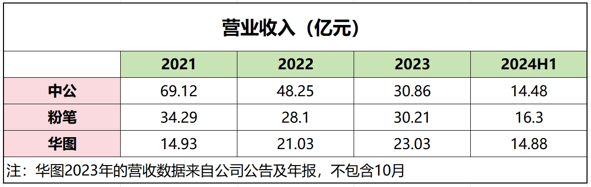 華圖近年來也在快速成長中。根據公告,該公司2021-2023年的收入分別為14.93億元、21.03億元、23.03億元,由於華圖教育業務剛剛注入上市公司,缺少數據,其2023年的收入不包含當年10月。即便如此,增長趨勢也是一目瞭然。