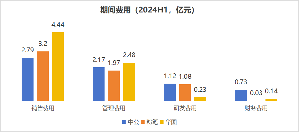 華圖在教育業務“注入”上市公司體系後,必然會面臨相似的問題,投資者的預期會更高,但是從收入的數據看,2023年後華圖增速就已經有所下滑。上半年華圖的銷售費用明顯高於中公和粉筆,華圖能否保住第二的位置還需要時間觀察。
