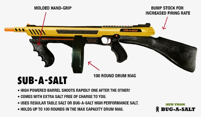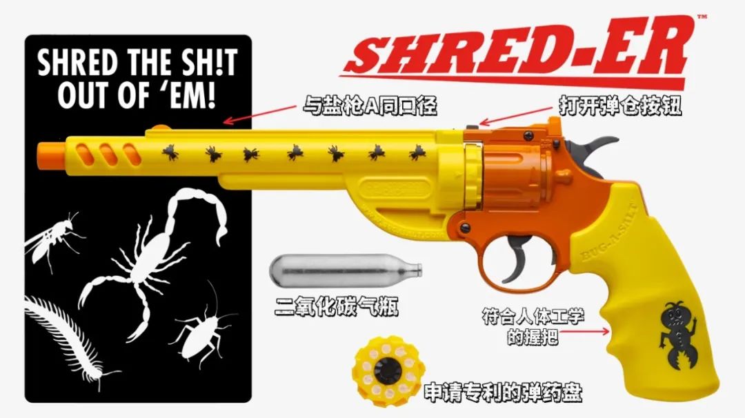 設計成功後,他給“鹽槍”取名為Bug A Salt(後面簡稱鹽槍A),並申請了發明專利。
