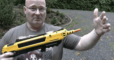 到了1990年代,馬焦雷開始嘗試製造發射鹽粒的槍,並在另一名設計師的建議下,想到了類似霰彈槍拉一下打一小撮鹽的泵動原理。