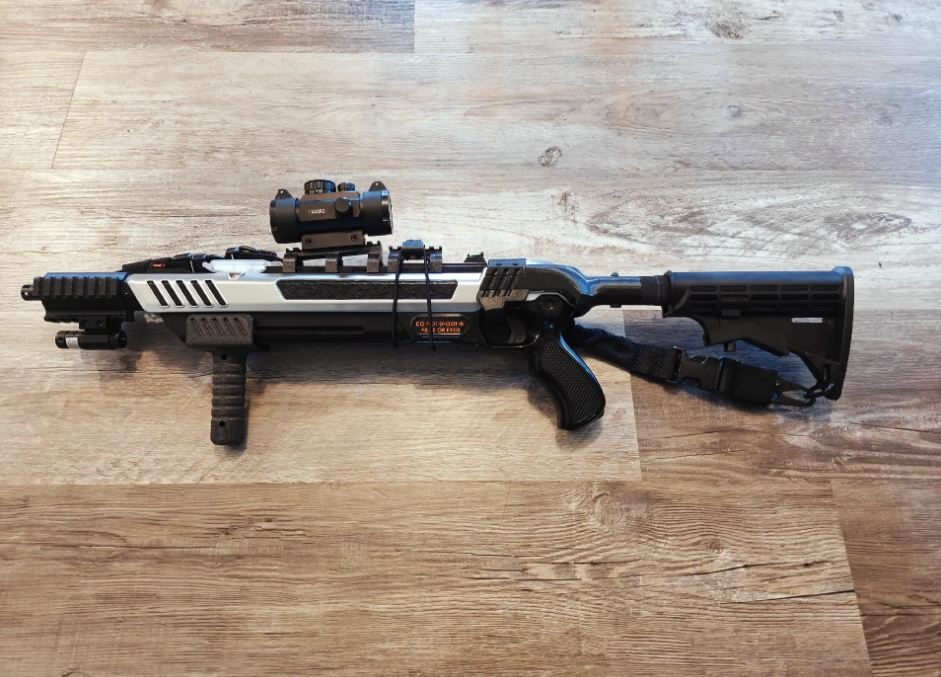 ▲寡婦製造者3.5版本,增加了槍托、垂直握把和槍帶,上膛更加容易。