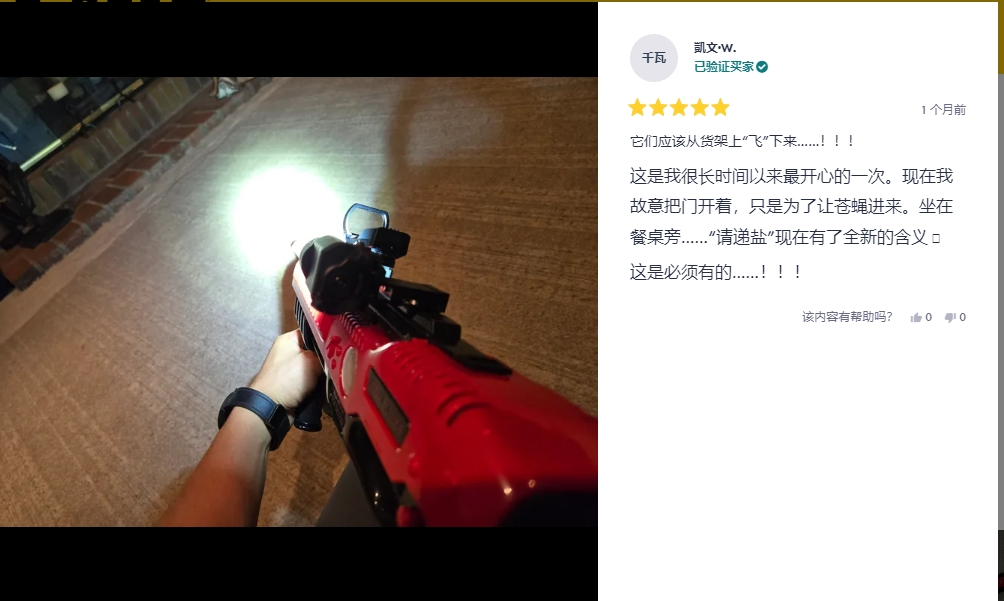 這就是網上曾經非常火的“滅蠅槍”,對於一個總想“射”點什麼的男性朋友而言,吸引力還是非常大的。