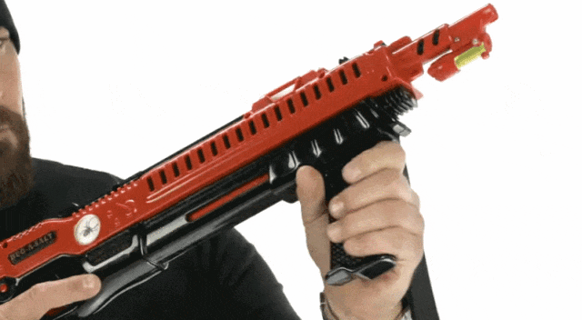 SHRED-ER的模仿的是美國西部時期的單動左輪手槍。因為是氣動的,不需要手動上膛,只需要扳動擊錘,然後扣下扳機即可,並且可以連續射擊10發,另外還有額外的快拔槍套和彈匣、由於這款玩具威力過大,需要年滿18歲才能購買。