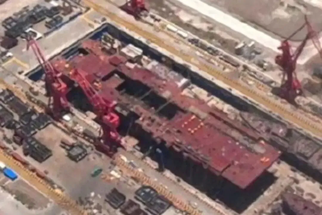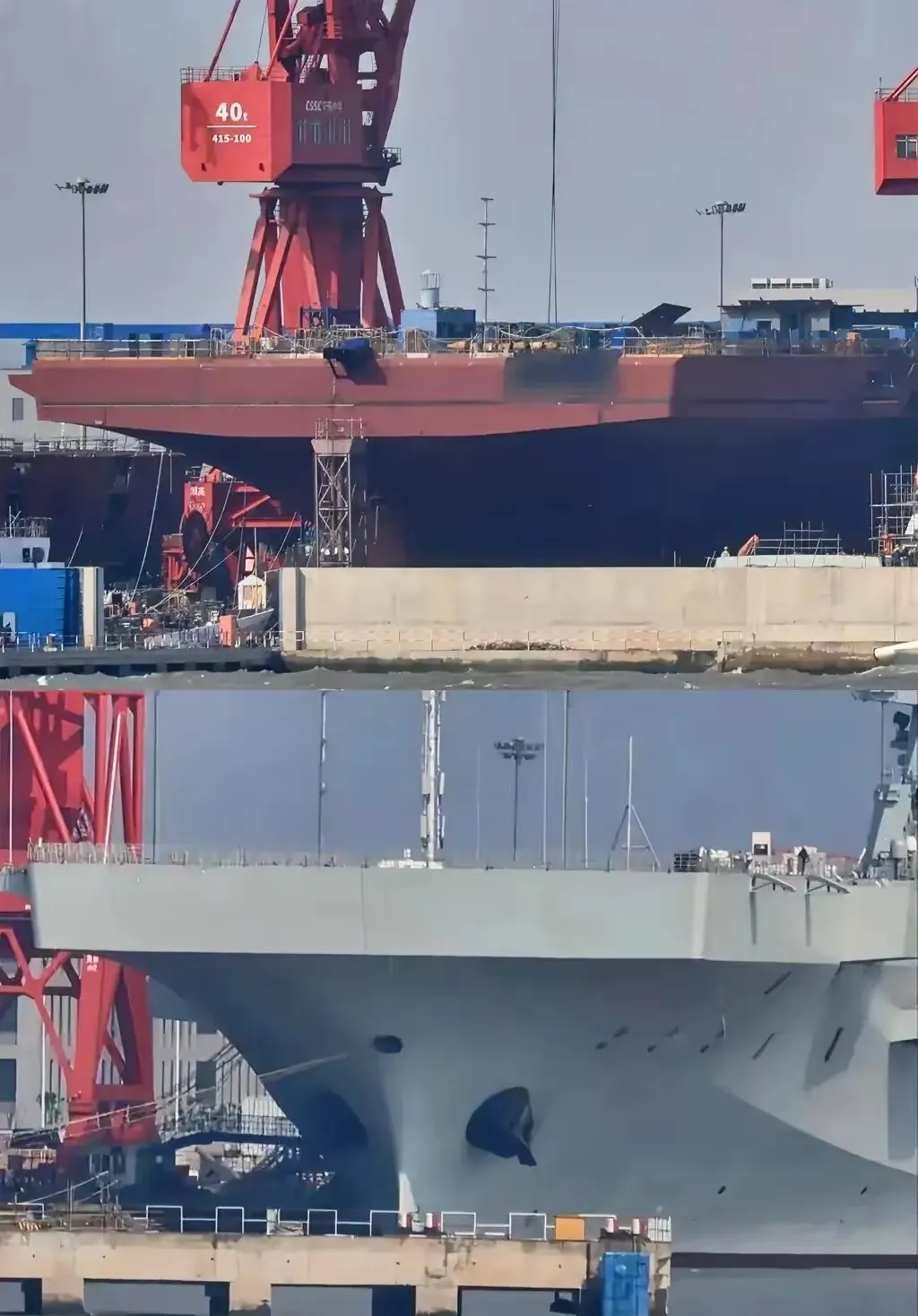 在完成首批3艘075型兩棲攻擊艦的建造後,2023年7月,又有人看到了滬東中華的船塢裏出現了075型兩棲攻擊艦的身影,看起來是第二批075型開始建造了。但萬萬沒想到的是,2023年12月14日,075型4號艦就下水了,塢期只有6個月,在舾裝了大約8個月之後試航。