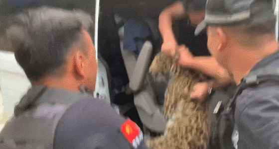 警務人員把豹抬出去,想要放歸