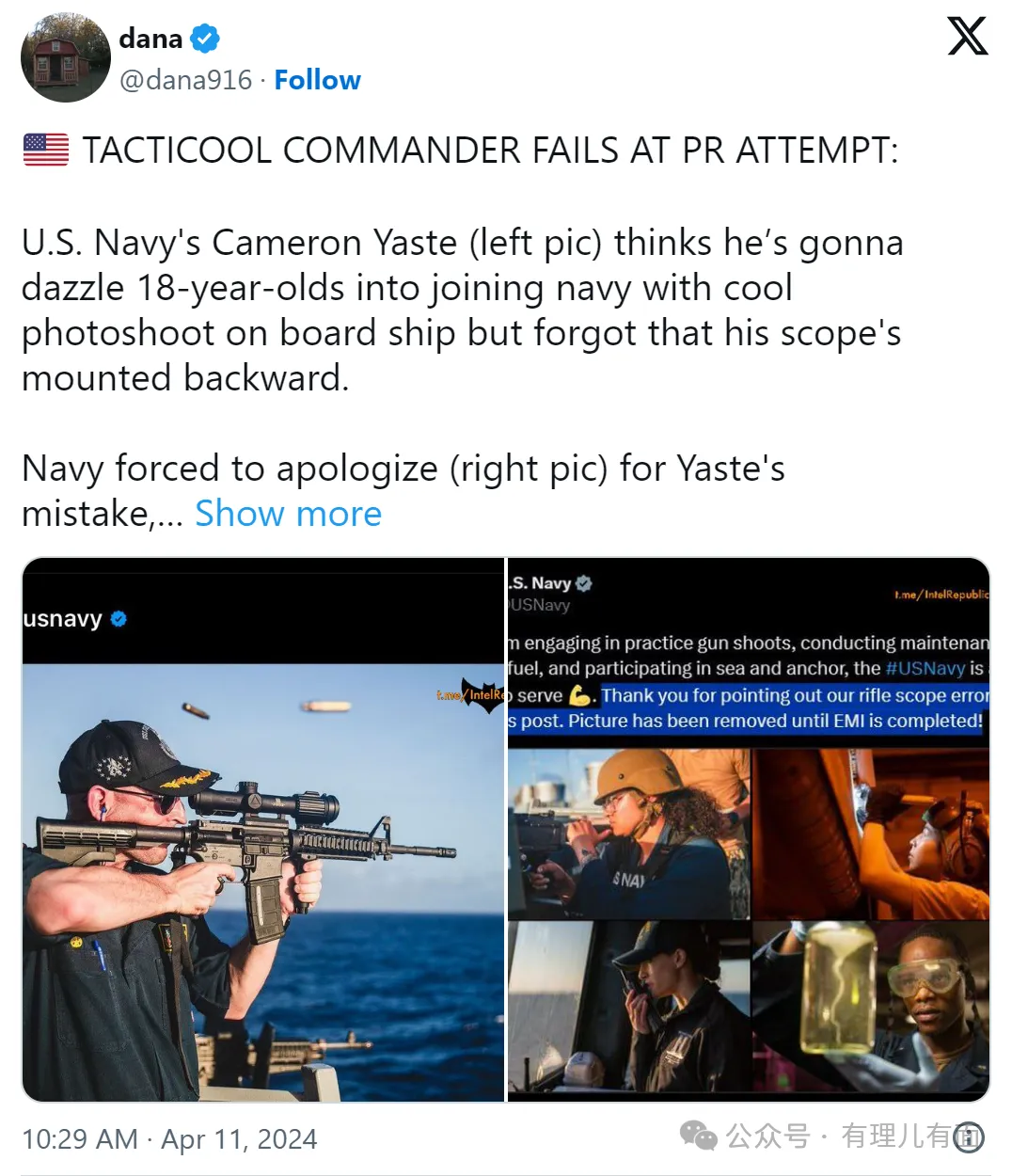 以上種種,不僅印證了這張照片純屬擺拍,還暴露出涉及拍攝照片、製作照片、發佈照片等一系列人員軍事知識的匱乏,進一步透露出美國軍隊的不嚴謹、不專業。