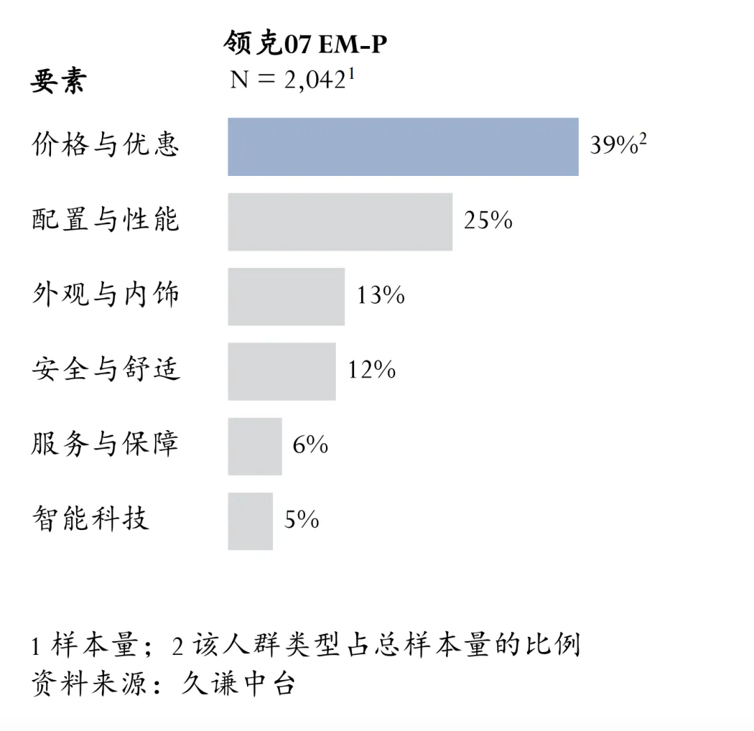 消費者對於領克07 EM-P的關鍵購買要素主要集中在價格優惠、配置性能、外觀內飾、智能科技以及服務與保障等方面。他們對價格優惠、購車權益、動力性能、續航能力、內飾科技感、外觀設計、安全性能、舒適性體驗、智能科技便捷性和服務保障等方面有着明顯的關注和需求。因此,品牌在產品設計和營銷中應重點突出這些關鍵購買要素,以滿足消費者的需求。