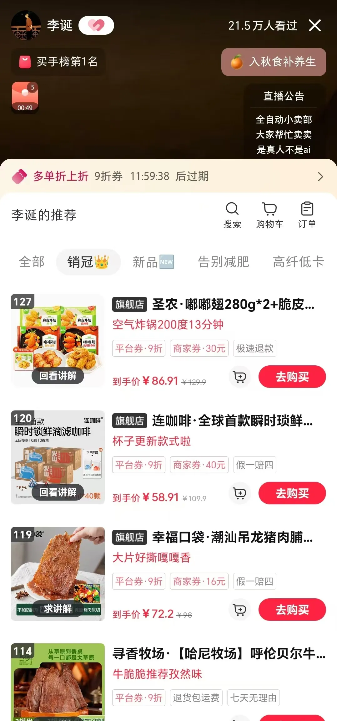 和曾經在東方甄選直播間喊着“我是來聽課的,順便買東西”的網友一樣,如今在李誕直播間網友們再次獲得了“邊聽段子邊下單”的購物體驗。