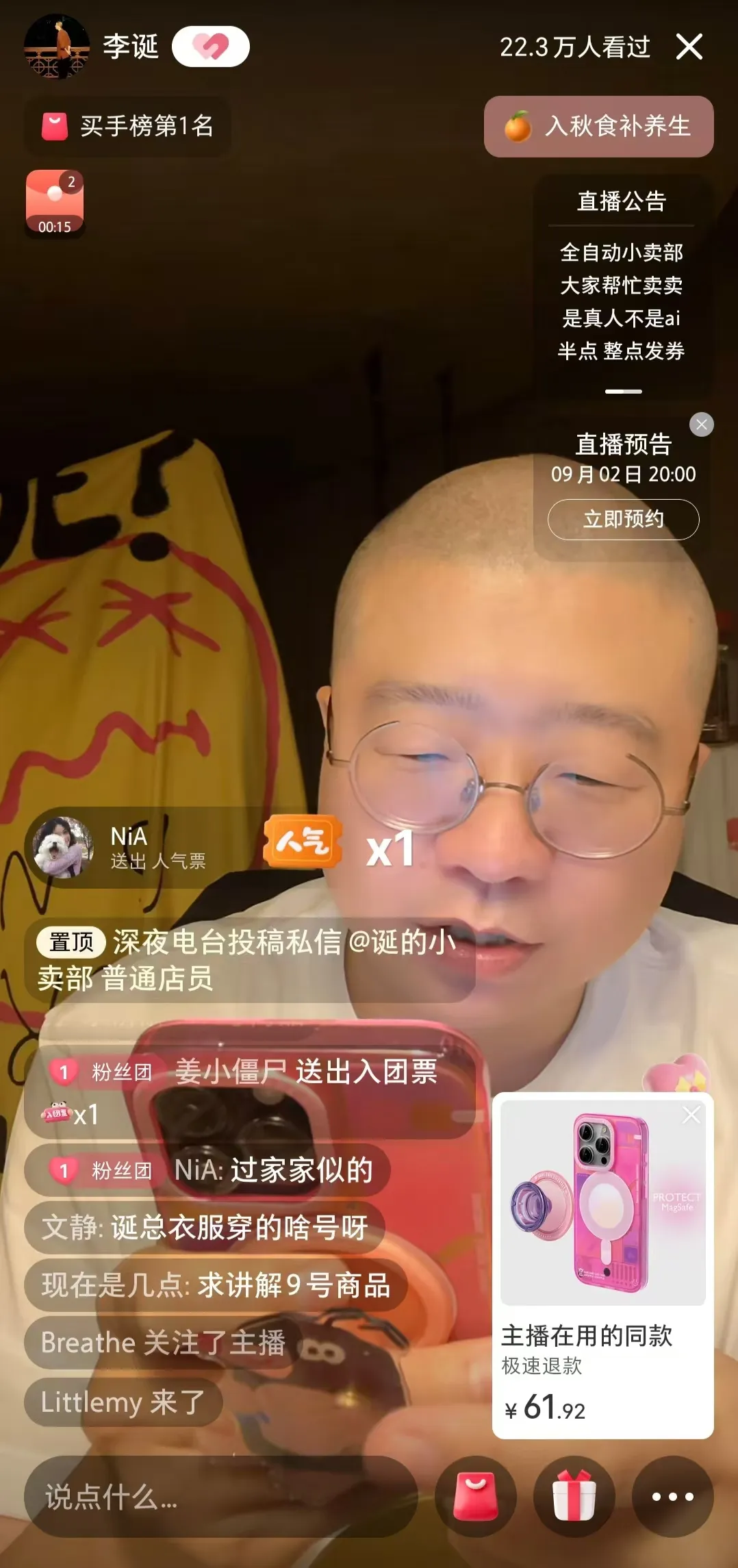 而對於平台而言,想要複製下一個李誕也並非易事。在8月22日的“神秘嘉賓十一點”專場直播中,李誕邀請了脱口秀徐智勝和呼蘭來到直播間,並參與讀信環節。