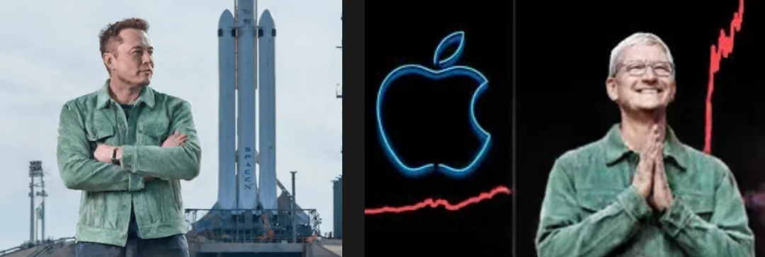像是我們分別傳了一張馬斯克和庫克的照片,想看看他倆同時穿一件綠色外套的樣子。