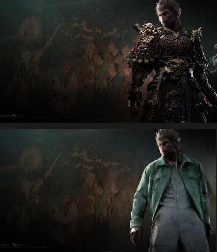 這都不算啥,最近《 黑神話:悟空 》不是很火嘛。於是緊接着,世超又傳了一張黑嗎嘍的照片,想看看它穿上現代裝是啥樣子。