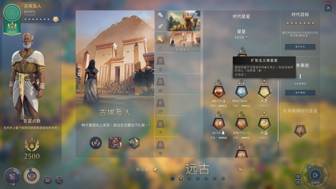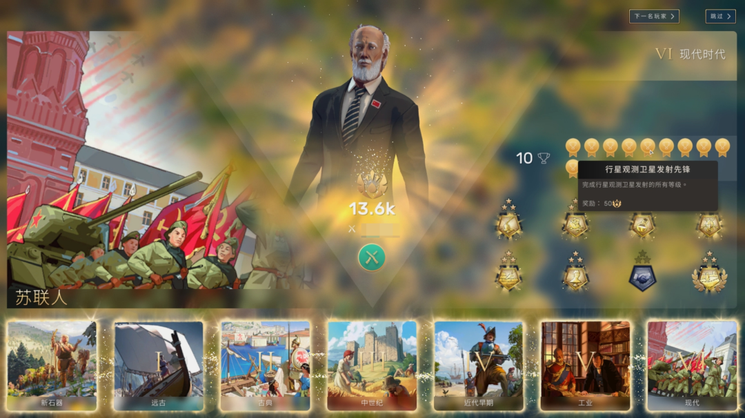 唯分數至上的勝利方式,也有悖於遊戲推動人類文明演進的主旨,進一步破壞了沉浸感。因為每個時代目標獨立,而前幾個時代的目標完成難度更低,硬拖不“轉職”完成更多時代目標的策略盛行,就連AI都這麼幹。《人類》也額外提供了“超越”機制,允許玩家不變身、放棄“轉職”的好處,換取的卻只是10%的名望分數獎勵。