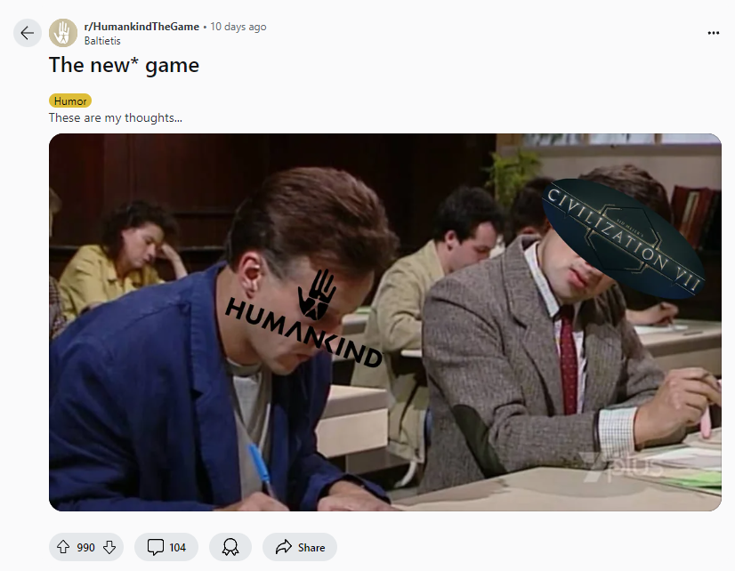 正如今天有人説《文明》新作像《人類》,在2021年由Amplitude開發的《人類》發售時,也有不少人説《人類》像極了《文明》,如今也算是迴旋鏢了。