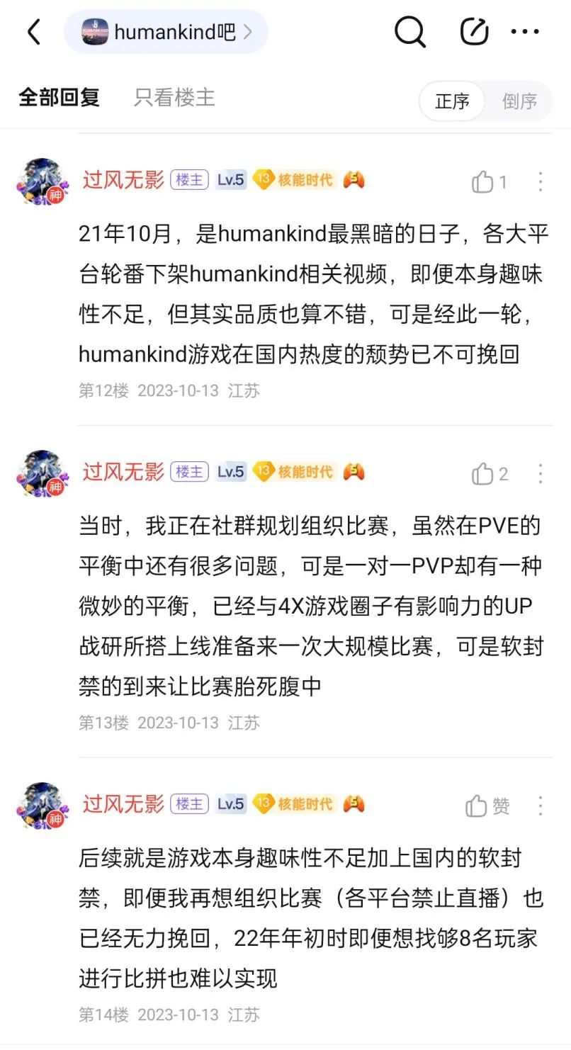即便如此,《人類》還是在發售兩個月後遭國內禁播,不止視頻留不住,社區討論和宣傳也受到限制,比起隔壁P社限制視頻上傳的《歐陸風雲4》、禁播和國區禁售的《鋼鐵雄心4》都要慘。這對《人類》的國內熱度和銷量可謂致命打擊。