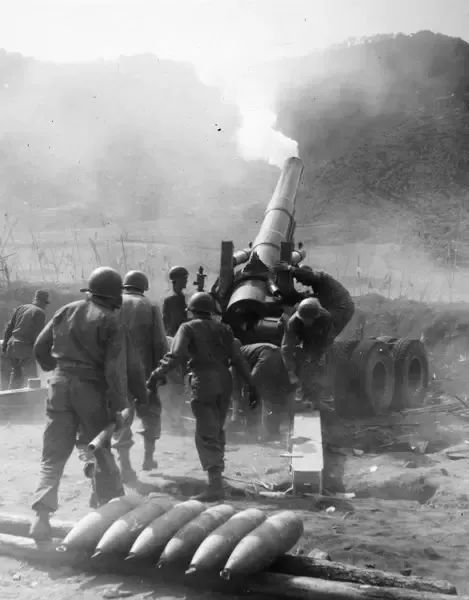 當時的美軍步兵師一個師的兵力在18000人上下,全面實現摩托化和機械化,而且火力相當強大。美軍步兵師下屬的炮兵部隊,普遍編制有 4 個師屬炮兵營,其中 3 個為 105 毫米榴彈炮營,共 54 門榴彈炮,另一個為 155 毫米榴彈炮營,有 18 門榴彈炮;這使得美軍一個師的炮兵部隊有72門105毫米口徑以上的榴彈炮。