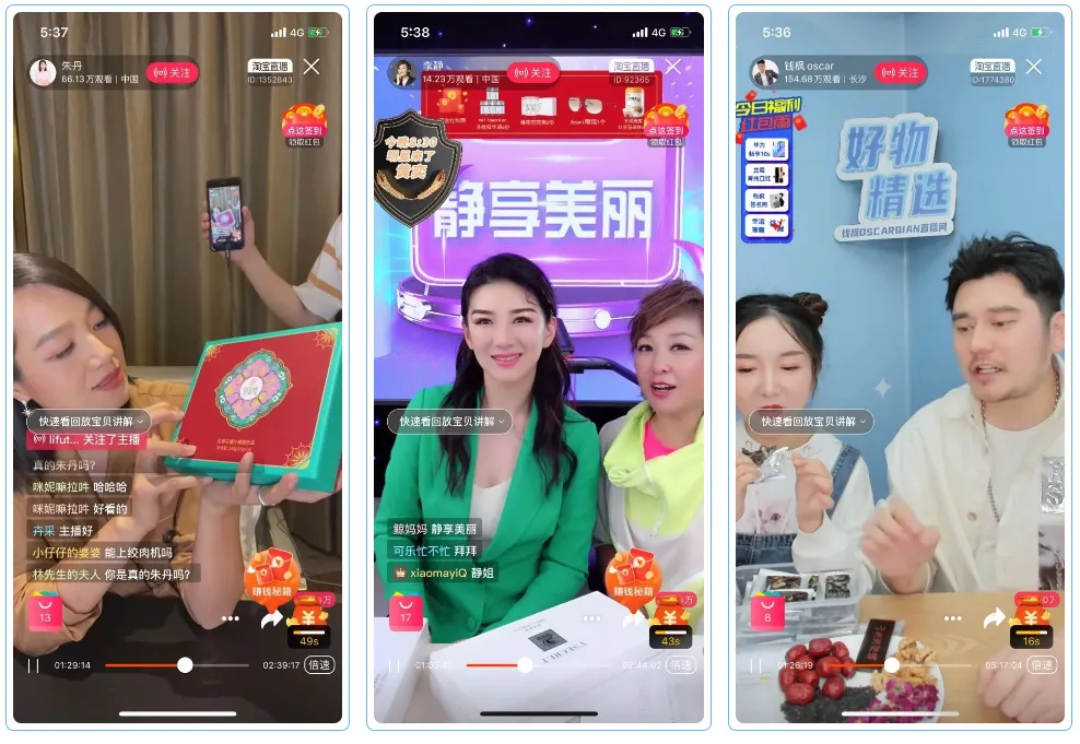 朱泳騰賣着69.9元的詩馨語魚子醬美膚氣墊霜,遲帥賣着399元的可復美膠原棒套裝,高梓淇則賣起79元的草本初色女性內褲……