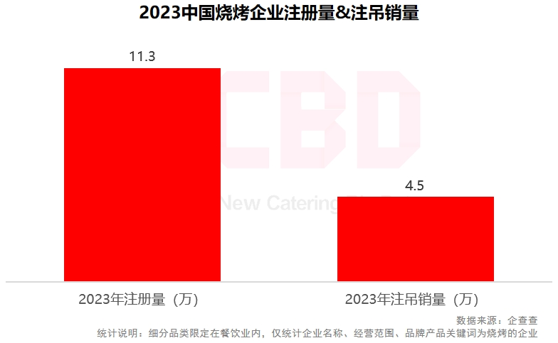 12、2023年中國燒烤烤串企業註冊量&注吊銷量