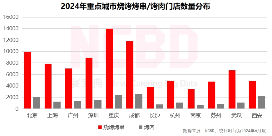 18、2024年重點城市燒烤烤串/烤肉門店數量分佈