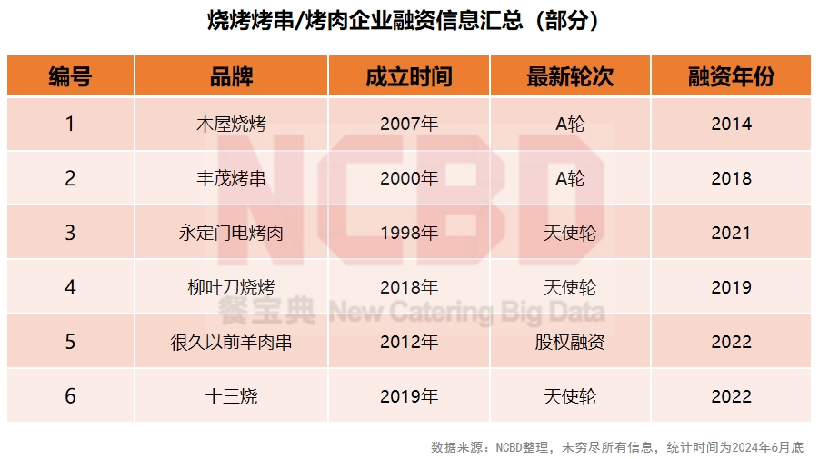 10、與茶飲、咖啡、火鍋等熱門品類相比,燒烤類企業對於資本的吸引力不強;這或許與燒烤行業連鎖化率較低、行業本身存在無法克服的痛點有關
