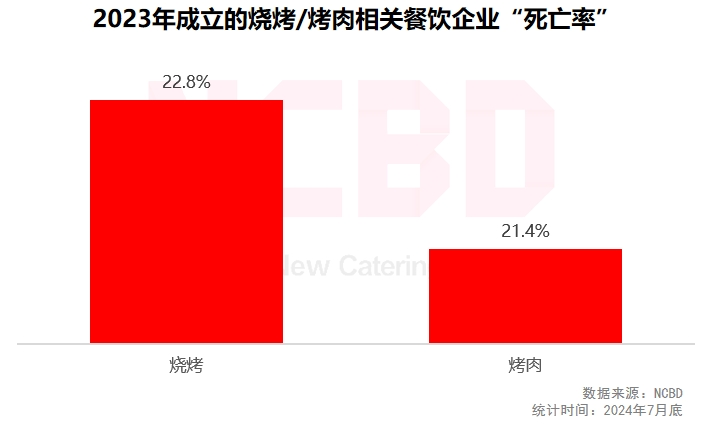 8、截至2024年7月底,2023年成立的燒烤企業中,有22.8%已經“死亡”;2023年成立的烤肉企業中,有21.4%的企業已經“死亡”