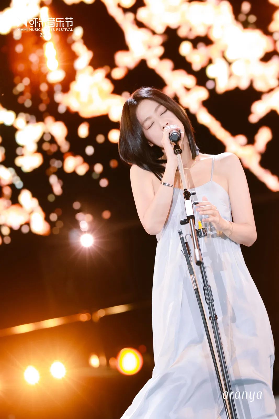 在臨近尾聲,她還刪繁就簡,抱起吉他,温暖地淺吟低唱。這首歌很有名,叫《Like A Star》,看似平淡卻曲折的樂章,將整體鋪陳得玲瓏有致。