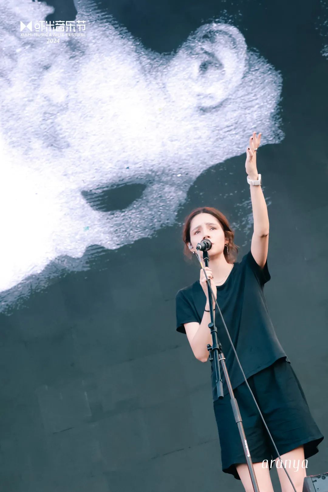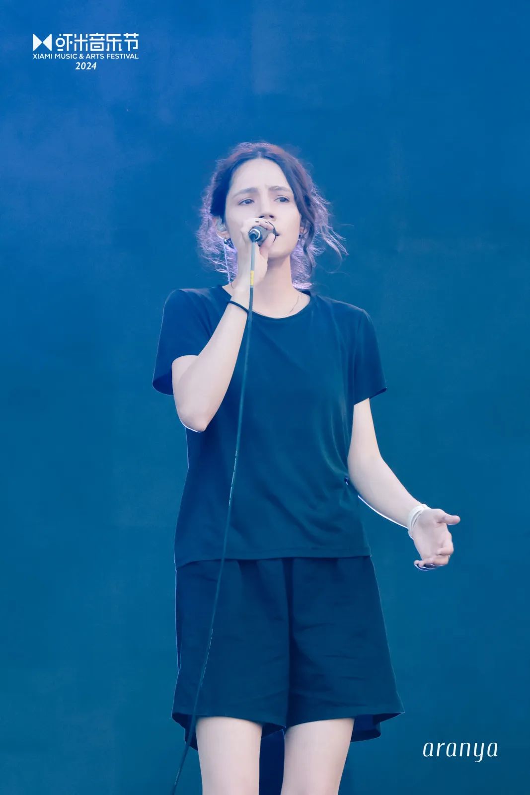 她的裙子隨海風擺,泛着藍光,印象裏,很少見過陳綺貞這麼“拼”,一把吉他玩出花來,先用琴弓演奏,之後各種SOLO,還有和主音吉他的對話……