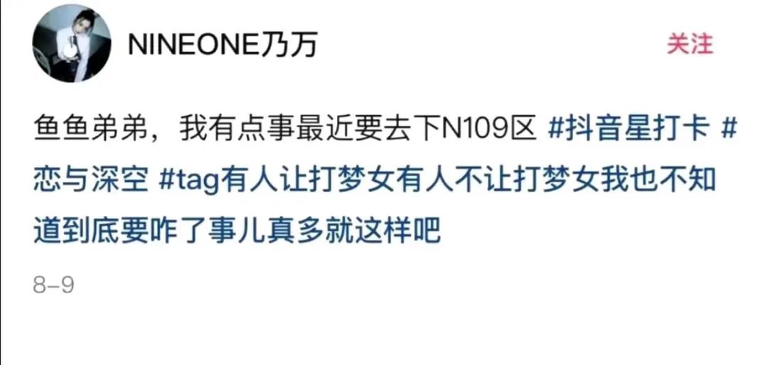 乃萬發微博表達了自己對《戀與深空》中一個角色的喜愛,有網友建議她發相關內容時打上“夢女”的標籤,方便部分不想刷到“同擔”的用户屏蔽。