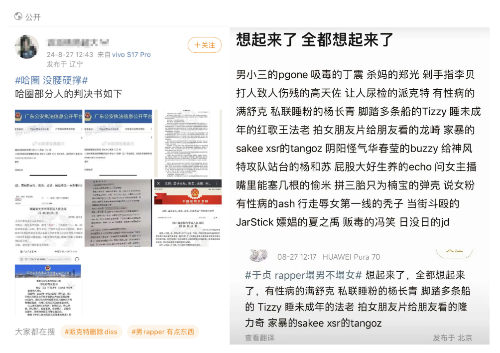 説唱愛好者通過廠牌聯合、抱團來尋找安全感。乙遊玩家們則是扒説唱歌手的黑歷史,不斷向廠方施壓,要求其下場參團。